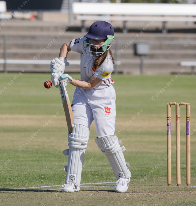 Wayback’s Jess Woolford plays a defensive shot in the senior colts cricket. (457893_20)