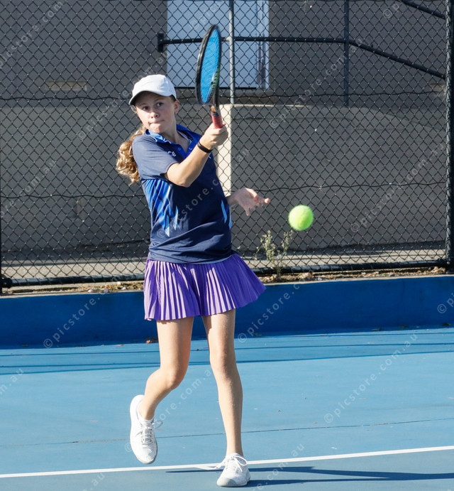 Mia Schlink returns the ball in her tennis match. (457893_27)
