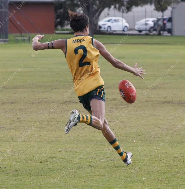 Terrence Betts kicks for Mallee Park in the under 17s. (494724_21)