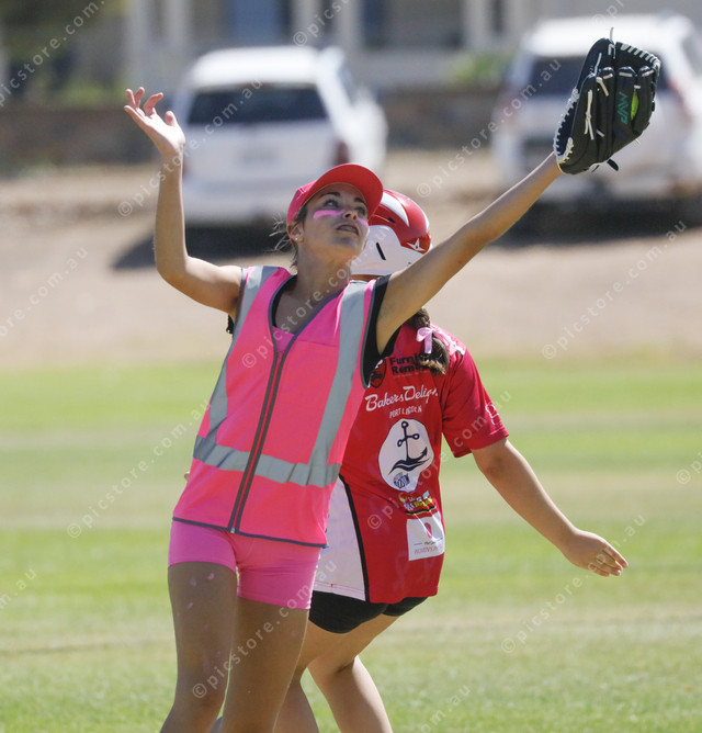 Annabel Ornsby takes the ball with her glove in the under 16 softball Pink Day match. (534037_12)