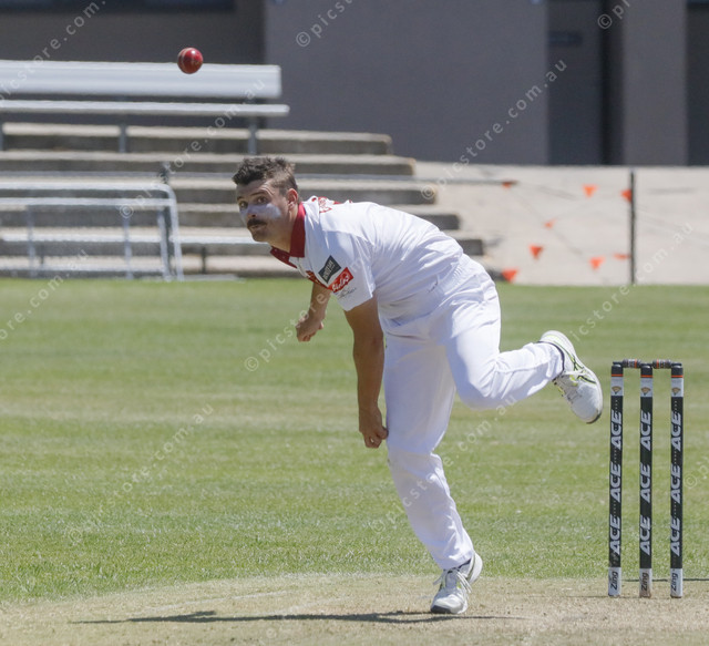 Jed Edmonds bowling for Southern Eyre South in the A grade cricket. (534037_15)
