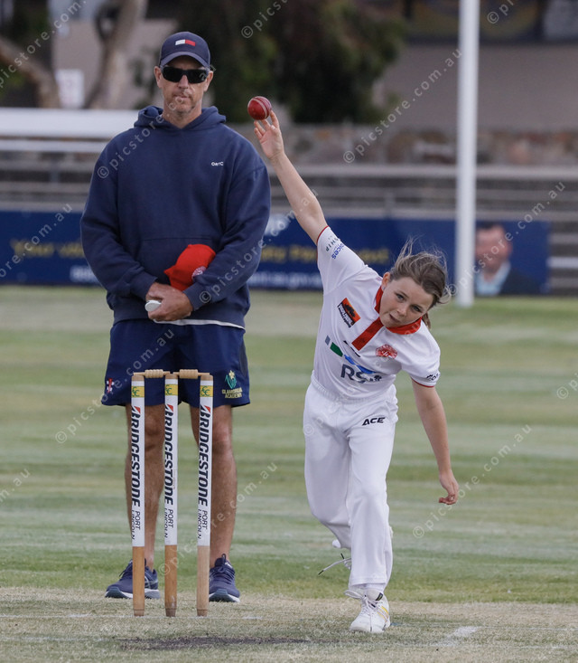 Charlee Frick bowling for Tasman senior colts. (459278_04)