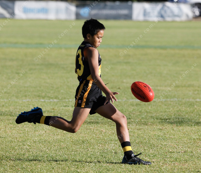 Adrian Habner kicks for Boston under 12s. (478165_02)