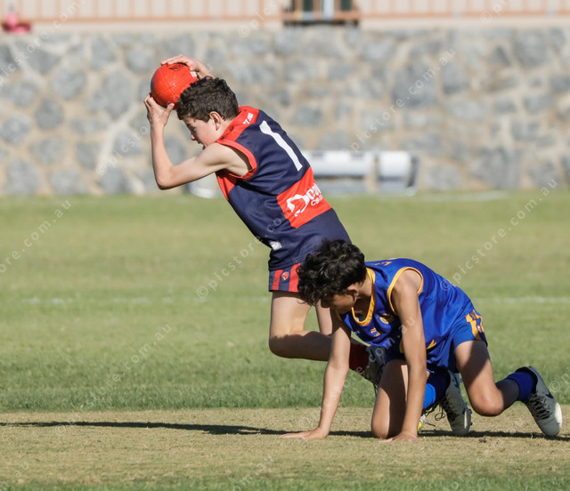 Mitch Davidson collects the ball for Wayback in the under 12s. (478165_04)