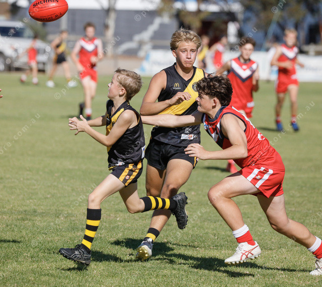 Boston’s Bentley Cindric follows the ball with Tasman Imperial’s Hayden Gameau giving chase. (478165_11)