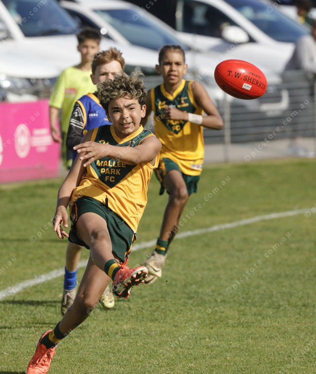 Fred Agius kicks close to the boundary line for Mallee Park. (504341_04)