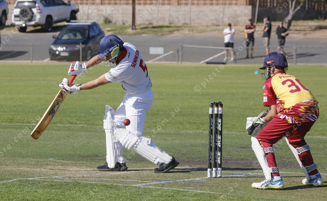 The ball passes the driving bat of Tasman’s Jai Semmler. (525583_03)