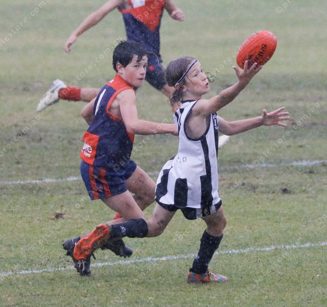 Marble Range’s Jackson Murphy takes possession of the ball ahead of Wayback’s Kaiden Langmead. (485300_05)