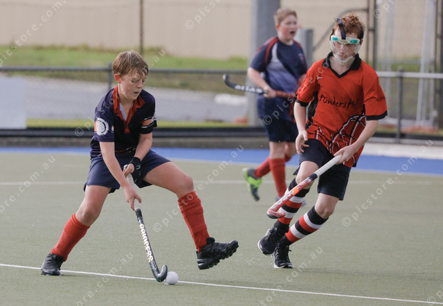 Zac Hancox has possession of the ball for Wanderers, while Flinders’ Will Hartigan defends. (485300_14)