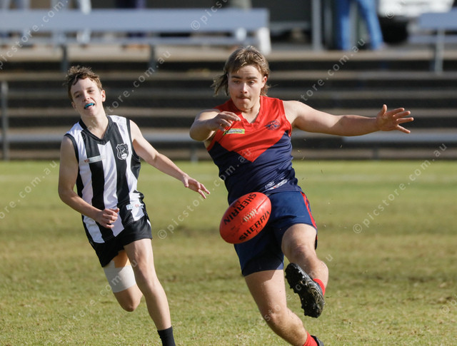 Wayback’s Drew Baldwin winds up for a booming kick in the under 17s. (485300_20)