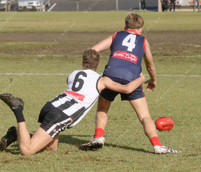 Marble Range player Mitch De Ron tackles Wayback’s Ryder Bilney who has managed to get the ball away. (485300_24)