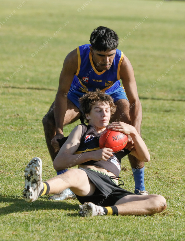 Conall Cochrane marks the ball for Boston under 17s ahead of Lincoln South’s Kwarnell Sumner. (485300_27)