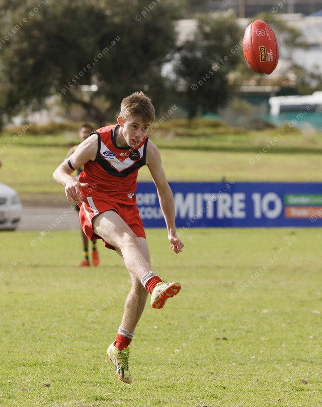 Oskar Kurovec kicks for Tasman Imperial in the under 17s. (485300_32)