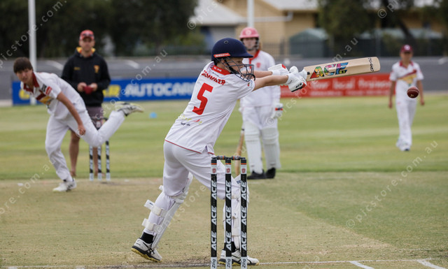 Tasman’s Jai Semmler throws his bat at the ball from Southern Eyre South’s Bryce Markey. (460709_15)