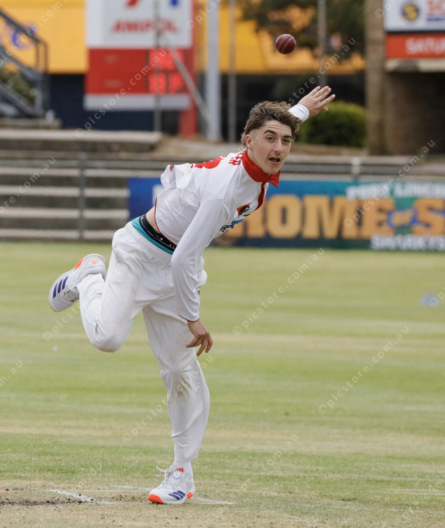 Tasman’s Marlie Fauser watches his delivery in the A grade match. (460709_29)