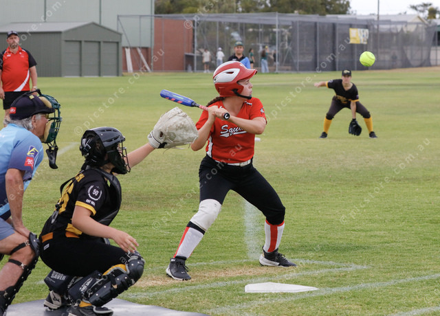 Alana Jantke in action batting for Squaws in the A grade softball preliminary final. (462155_31)