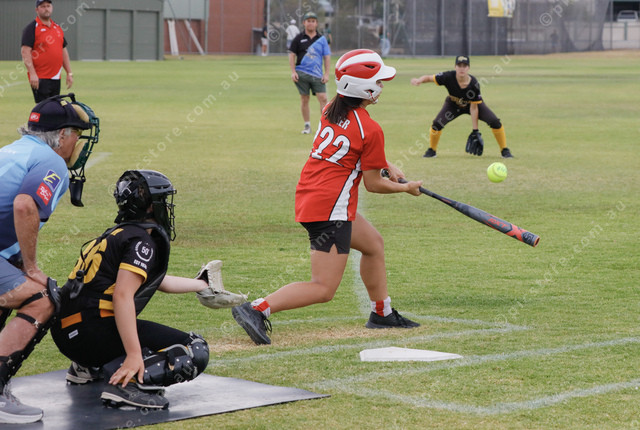 Matilda Packer hits the ball for Squaws in the A grade softball. (462155_33)