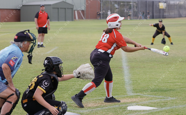 Quinny Skinn bunts the ball for Squaws in the A grade match. (462155_35)