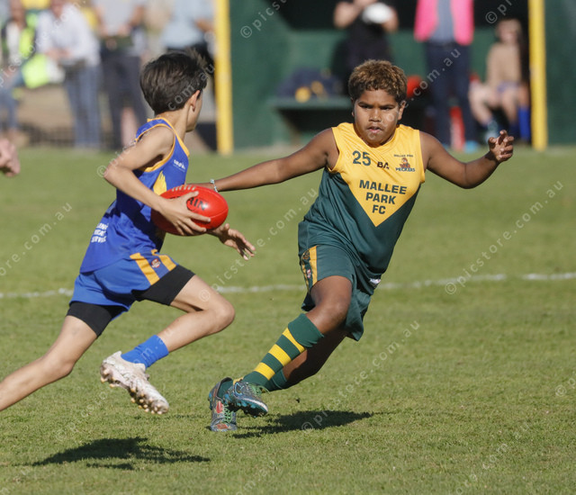 Lincoln South’s Noah Henson and Mallee Park’s Fabian George go head to head, (499174_07)