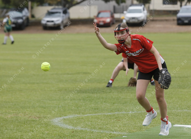 Kailey Miller pitches for Squaws’ in the under 16 softball. (513896_12)
