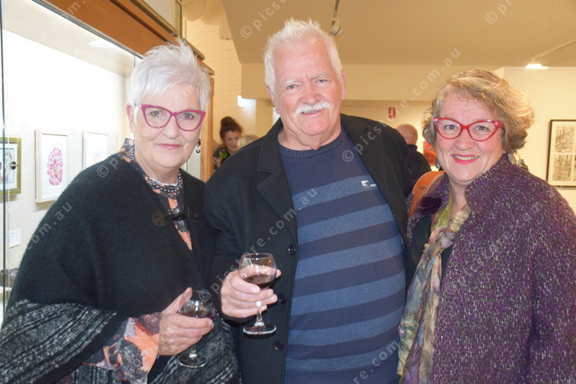 Cheryl Dallimore, Ric Connors and Patena Moesker enjoyed a glass of wine and striking art.