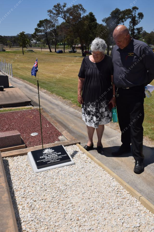 Glenn Boston and his aunt Violet Richter (ne?e Boston) pay their respects to their late grandfather and father, Private Cecil Hamilton Boston, whose grave was among those rededicated.