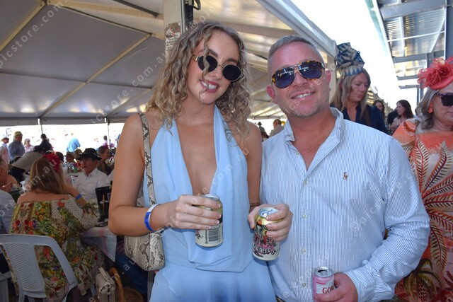 Brooklyn Favero and Cam Giddings enjoyed the afternoon catching up with friends and soaking up the atmosphere trackside.