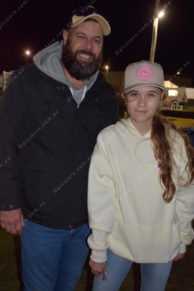 Danny Folkers and daughter Harper braved the cold and shared a father-daughter night out at the Stanthorpe Rodeo. (Samantha Wantling: 482165)