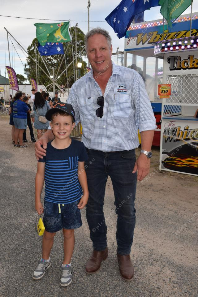 Father and son Todd and Charlie Wilshire took in the sights of sideshow alley. (Samantha Wantling: 532335)