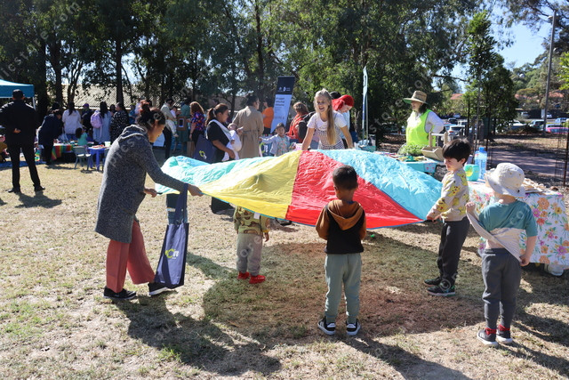 The kids had fun running under the parachute. (466785)