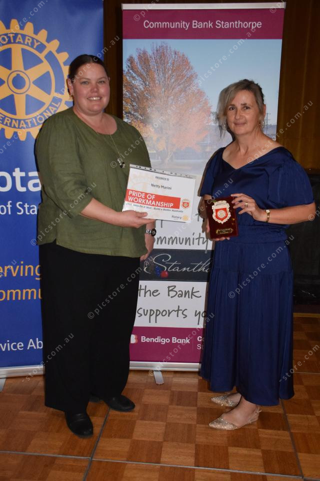 Bendigo Bank manager Teneil Bullow was honoured to present Netty Marini from Granite Belt Support Neighbourhood Centre her Pride of Workmanship Award.