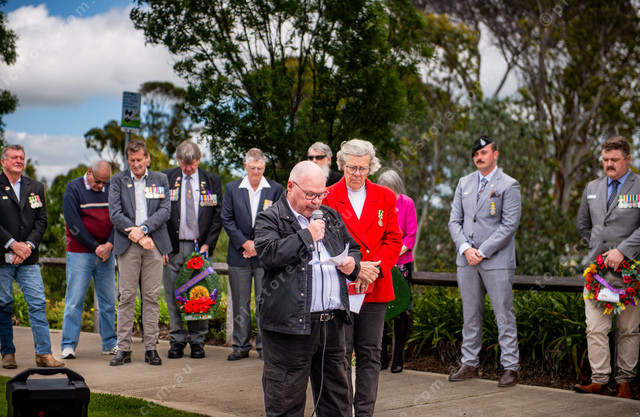 Dave Vaughan speaks at the Remembrance Day service in Strathalbyn. (Jack Church 516816_10)