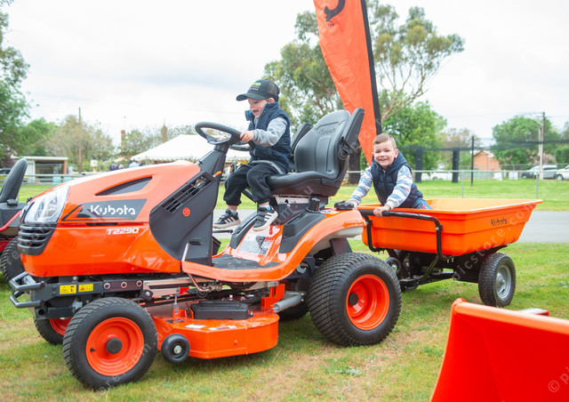 Harvey and Dustin of Finniss found an awesome lawnmower at the Strathalbyn Show. (Jack Church 508587_21)