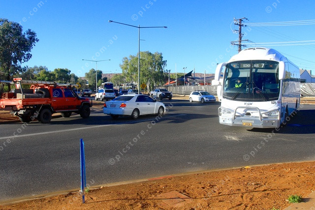 TREPIDATION: A school bus mixes with other traffic at the blackspot intersection. (PIC: PHIL WILLIAMS 497177_05)