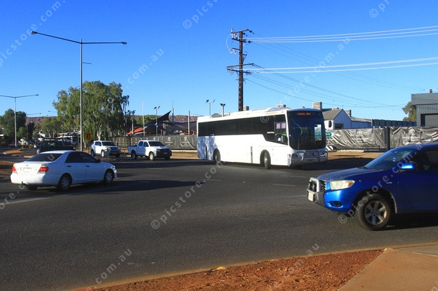 WAIT: A School bus waits to cross the Stuart Highway onto Schwarz Cres. (PIC: PHIL WILLIAMS 497177_06)