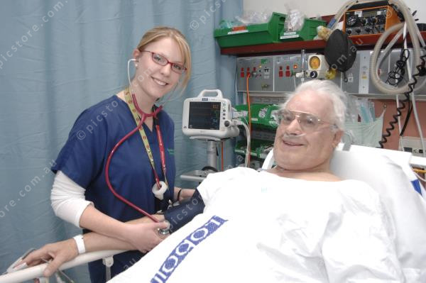Meet security waiting reception at Dandy Hospital. Pic of Rachel Summers, a nurse who will soon be receiving a Victoria Police Citizen Certificate for her work saviing the life of a man who had been in a serious accident. Pic of her at work in emergency ward.