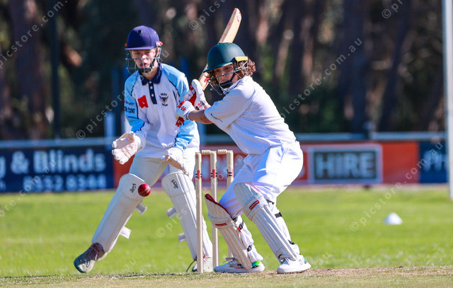 Blake Charity winds up to smack this ball as hard as he can for Willunga. (Jesse Ehlers 514907_03)