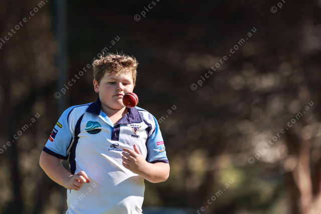 Victor Harbor’s Byron Johnson prepares himself for the next delivery in the Junior Colts. (Jesse Ehlers 514907_04)