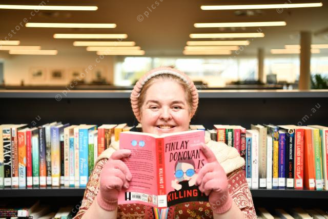 Pic of Sunbury librarian Kat Taylor with her favourite recent book. Photo by Damjan Janevski. 287769_01