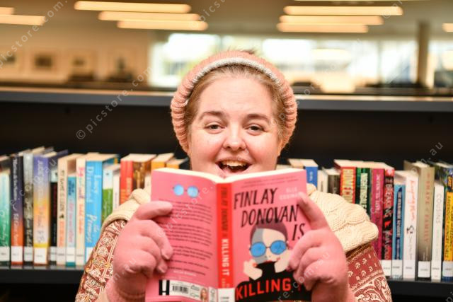 Pic of Sunbury librarian Kat Taylor with her favourite recent book. Photo by Damjan Janevski. 287769_02