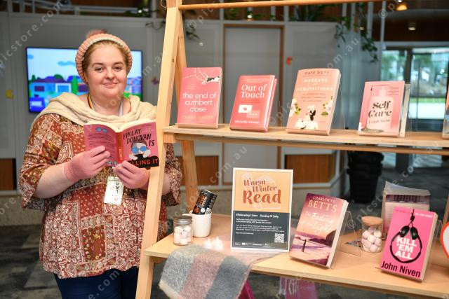 Pic of Sunbury librarian Kat Taylor with her favourite recent book. Photo by Damjan Janevski. 287769_05