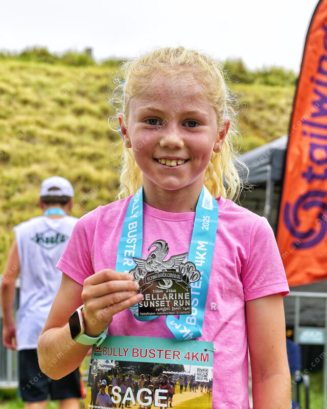 Sage Capuani, winner of the girls section of the Bully Busters run with her medal (Ivan Kemp) 458195_11