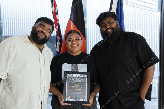 Young Achievers award to brothers, Chris and Braydon Saunders with Keicha Day – Treaty Engagement Co-ordinator.