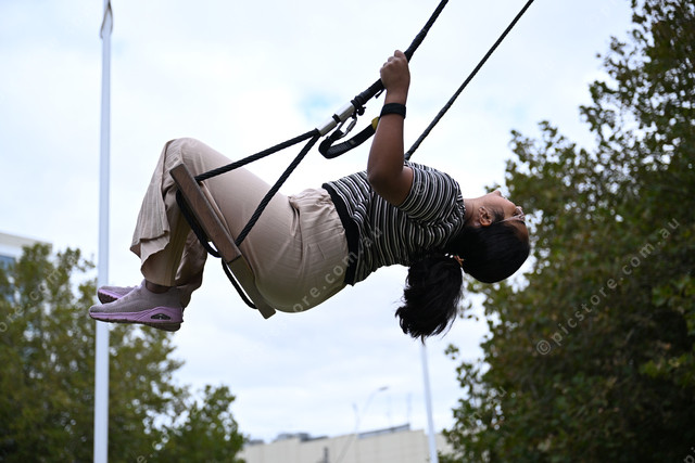 Wyndham installed a massive swing at Station Place in Werribee. Pic of Aadya (12). Photo by Damjan Janevski. 468179_06