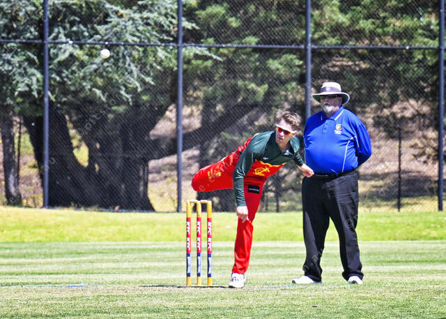 Reece Plumridge (1 for 9 off his one over) in action (Ivan Kemp) 529919_03