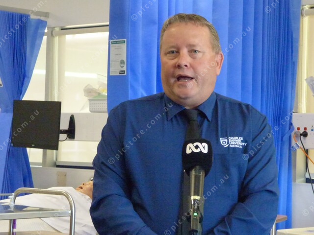ANNOUNCEMENT: CDU pro vice-chancellor and chief executive of TAFE, Michael Hamilton speaking at the announcement. (Charles Geary: 472726_01)