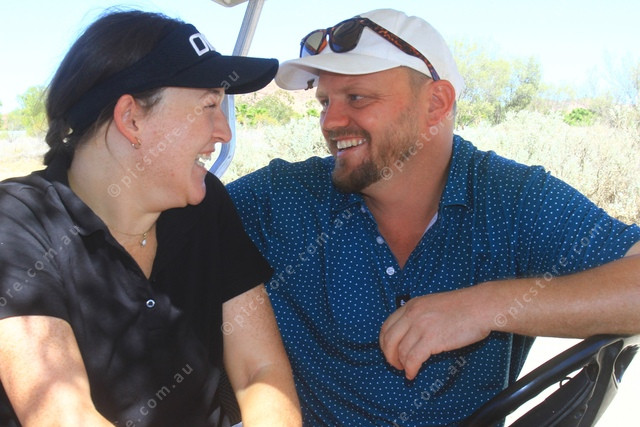 HAPPY: A happy Tayla Fordham and Oscar Ball after becoming engaged on the 18th green. (PIC: PHIL WILLIAMS 465321_02)