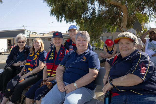 Eyre Peninsula Crows Supporter Group members Jan Miegel, Kaye Bridger, Pam Curtis, Alison Smart, Sharon Humenick and Janet McDowall were cheering on Adelaide. (Mitchell Paterson: 476293_16)