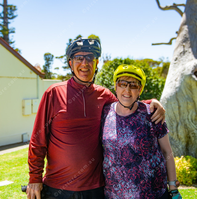 Paul and Heather McIntosh of Strathalbyn rode to the town centre to view the Tour Down Under. (Jack Church 530788_02)