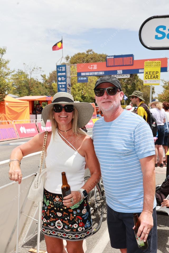 Tammy and Tony Williams of Willunga at the finish line of Stage 4 of the TDU. (Jesse Ehlers 530771_11)